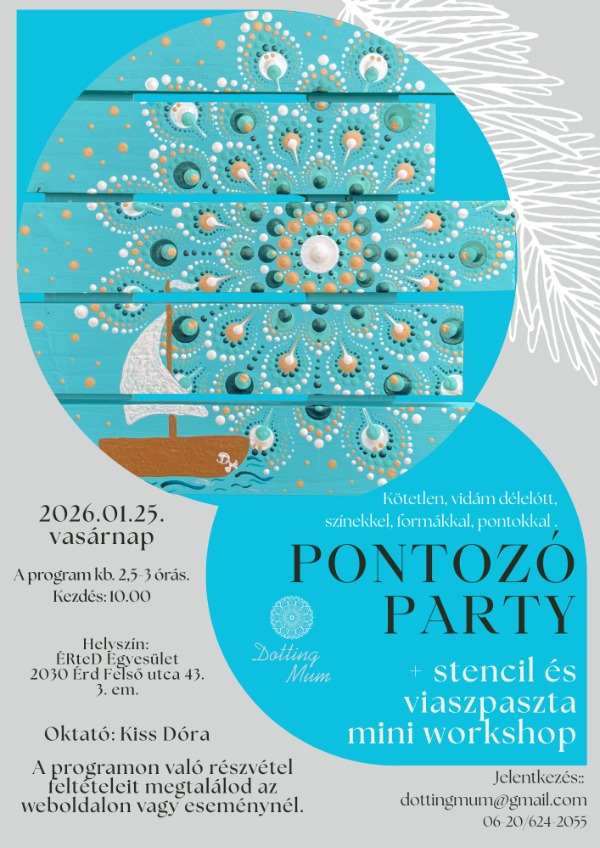 A résztvevők száma korlátozott, max. 12 fő tud egyszerre alkotni. Ezért érdemes mihamarabb jelentkezni.